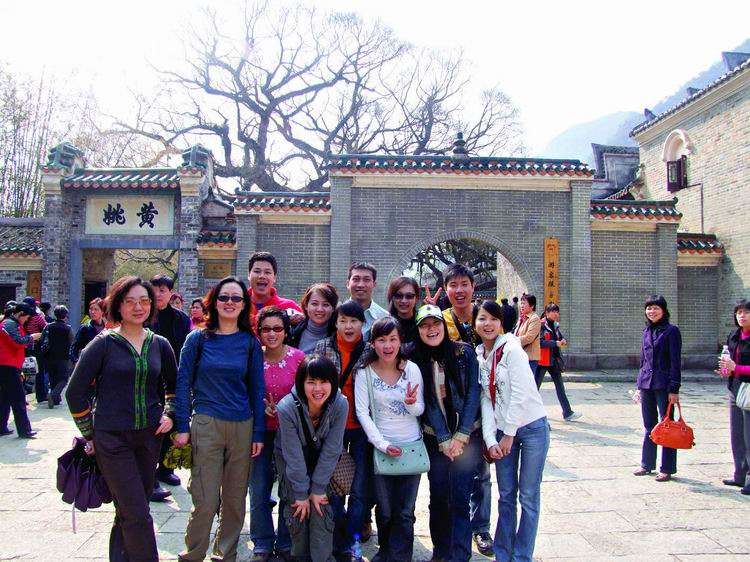 第三日清晨,整裝待發(fā)八點前往黃姚古鎮(zhèn)。賀州是粵東的一座新興城市,而黃姚,卻有著近千年的厚重。從古鎮(zhèn)入口前左邊的一條岔路走進(jìn)去,首先觸目的便是一條清澈的小溪、一棵參天的古榕樹,我們開始細(xì)細(xì)觀賞這個小鎮(zhèn)。古榕的軀干伸向小溪,又從空中垂下縷縷氣根,與水中的倒影連為一體。溪邊水井里清可見底,偶有小魚游動。據(jù)說黃姚是按九宮八卦陣式布局,鎮(zhèn)上的石板街有8條,共99999塊青石板,最早鋪砌于清順治年間。年代久遠(yuǎn),不知有多少人走過,青石板已被磨得像鏡子般光滑,隱約泛著人影。橋下的姚江,如今看水依舊清碧,可是繁華不再,顯赫的牌匾也只能靜靜地訴說著昔日的輝煌。石板路的小村落很安靜,人們過著日常的生活,村婦們在井頭溪邊,淘菜洗衣,交流信息,菜渣、閑話都隨溪水流去,并不對外來的游客有格外的好奇。孩子們快樂地嬉戲著,在那些蜿蜒的巷子里不時冒出他們快樂的喧嘩。宗祠府第這樣的舊時輝煌不經(jīng)意地散布于鎮(zhèn)上的民居之中,亭閣前的聯(lián)匾,記錄著文人騷客對黃姚的鐘愛,只是年代遠(yuǎn)去,如今物是人非。陽光下的青石板路上有時候也會躺著狗或者貓,你從它們身上跨過去的時候,它們會懶懶地翻翻眼皮,然后繼續(xù)睡在陽光里。雞們顯得勤快些,會邁著方步走在你前面東看看西瞅瞅,如果你不急,它會一直走在你前面,時間對它們沒有任何意義。還有那些老房子,任何一座都可能藏著一個故事。結(jié)了蛛網(wǎng)的窗欞恐怕已有了幾百年的歷史,但是沒有人把這當(dāng)成了不得的事情,一切如常,平靜隨意。