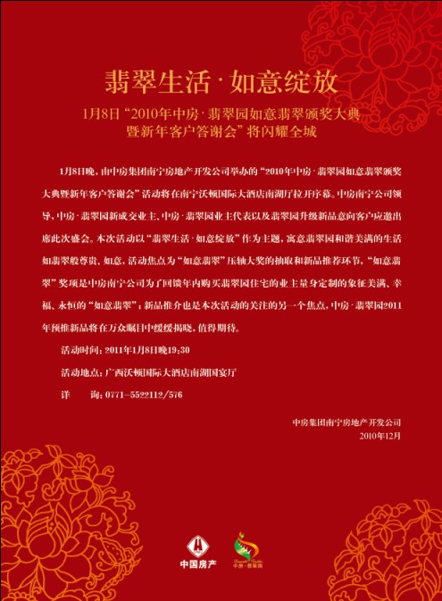 中房·翡翠園如意翡翠頒獎(jiǎng)大典2011年1月8日盛裝開啟